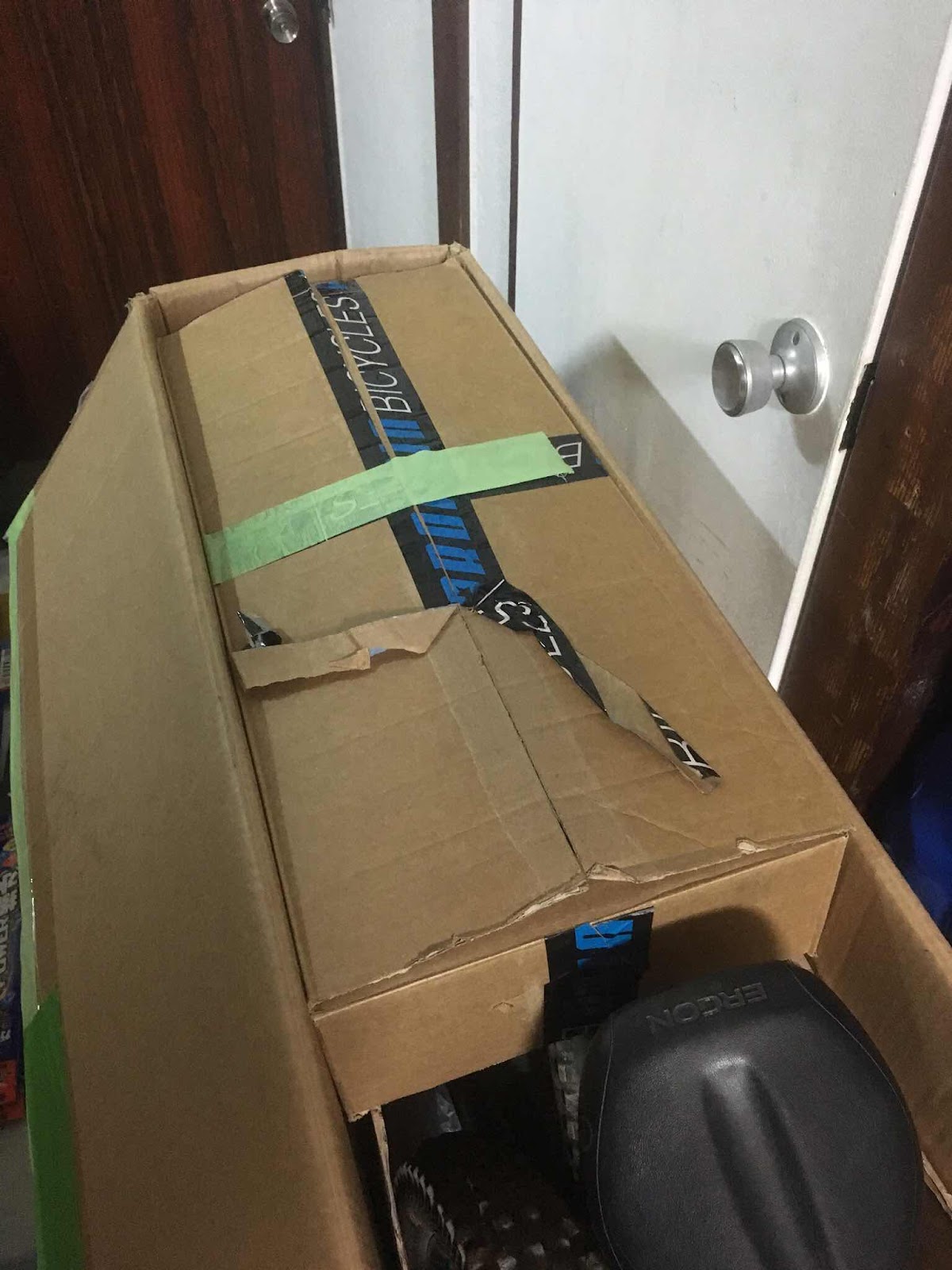 そしてこれはあればだけどダンボールの内幅と同じ大きさの箱があるとフレームの上下ガタ取りに加えて荷物も入れられて一石二鳥だ。